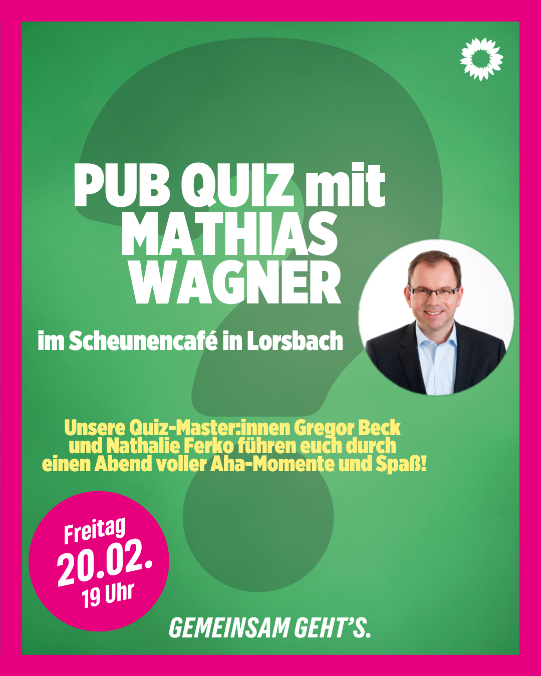 PubQuiz am 20. Februar 2026 in Lorsbach mit Mathias Wagner 504 504 people viewed this event. Wie gut ist euer Allgemeinwissen? Testet eure Kenntnisse in Bereichen wie Kultur, Wissenschaft, Sport, Geschichte und aktuellen Themen beim Pub-Quiz am 20. Februar im Scheunencafé in Lorsbach (Alt Lorsbach 31, 65719 Hofheim am Taunus). Ab 19 Uhr erwarten euch spannende Quizfragen für jeden Geschmack! Als … PubQuiz am 20. Februar 2026 in Lorsbach mit Mathias Wagner weiterlesen